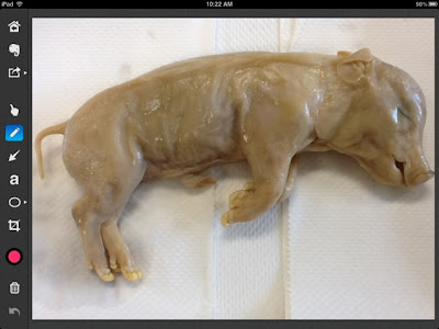 1. The fetal pig dissection was interesting, to say the least. I thought the pig would be a lot larger than it was, and that surprised me a little. I didn't except it to be so small/young, or that it would even still have the umbilical cord still attached. It was a very interesting to see that the internal anatomy was easier to understand, as it was more similar to human anatomy, and therefore a valuable learning experience. With systems placed so easily, it was very simple to see how the system were interconnected.
